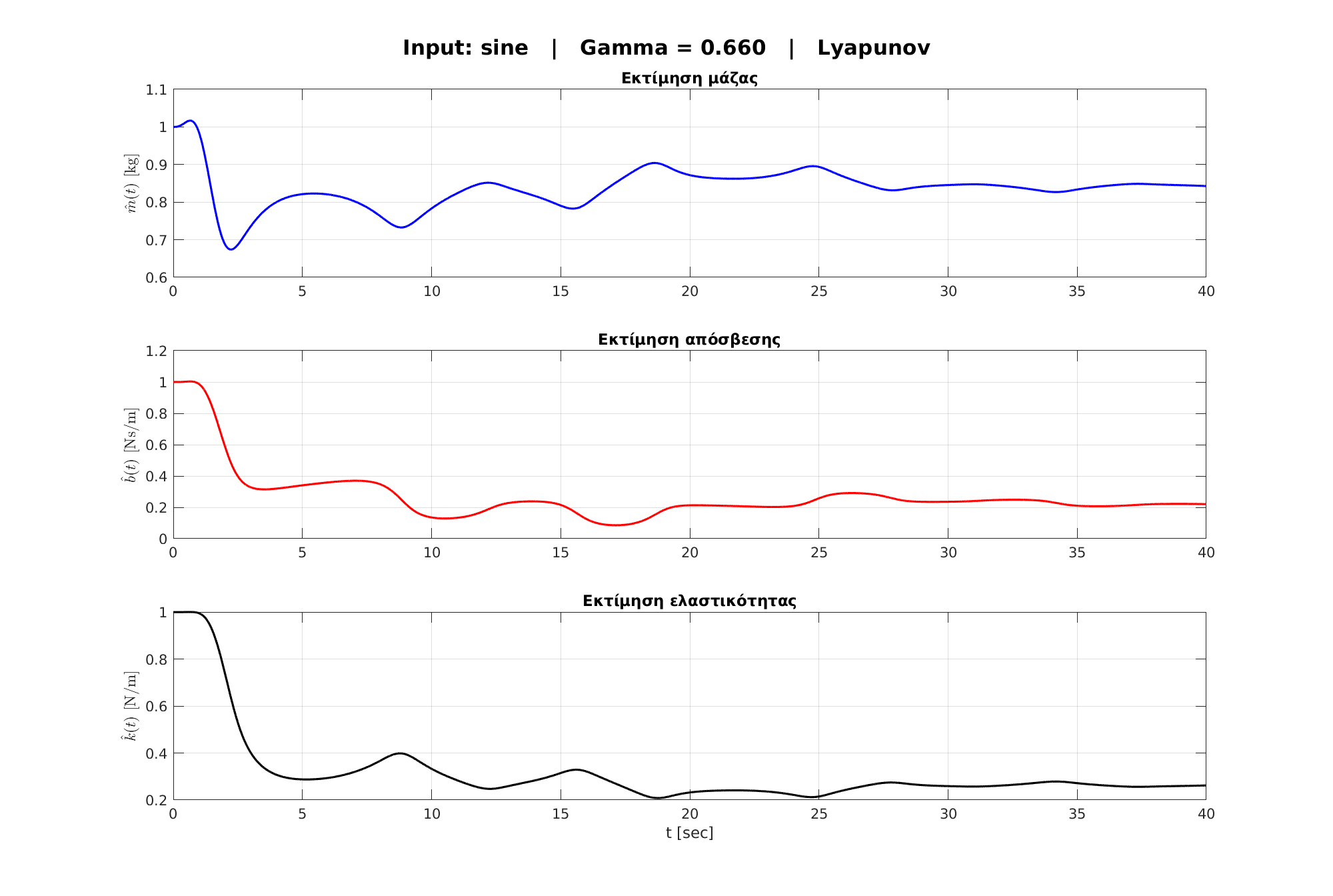 \subsection{1β – Εκτίμηση παραμέτρων με μέθοδο Lyapunov}